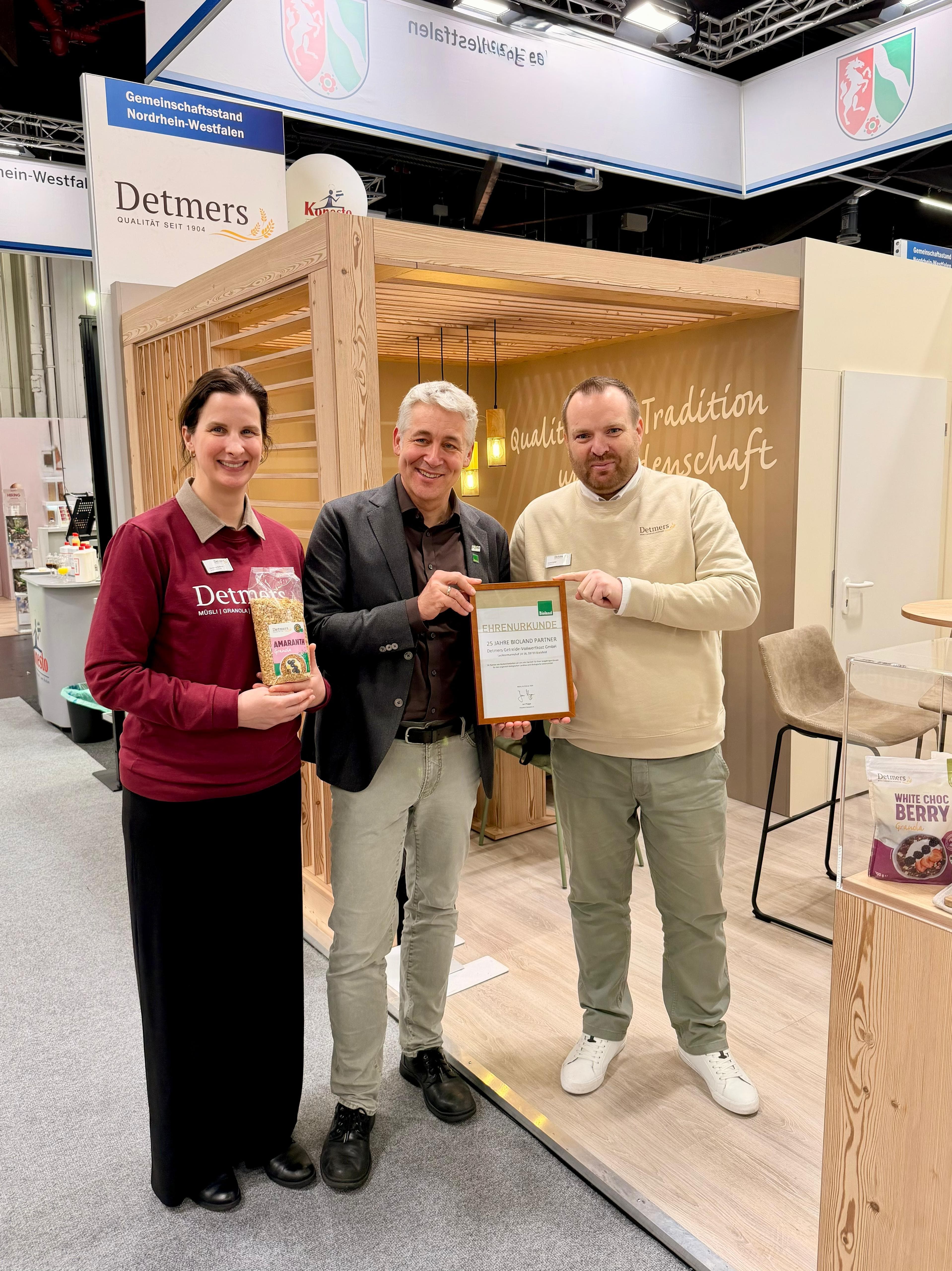 Detmers feiert 25 Jahre Bioland-Partnerschaft und präsentiert drei neue Bioland-Müslis – erstmals zu sehen auf der BIOFACH im Februar in Nürnberg.