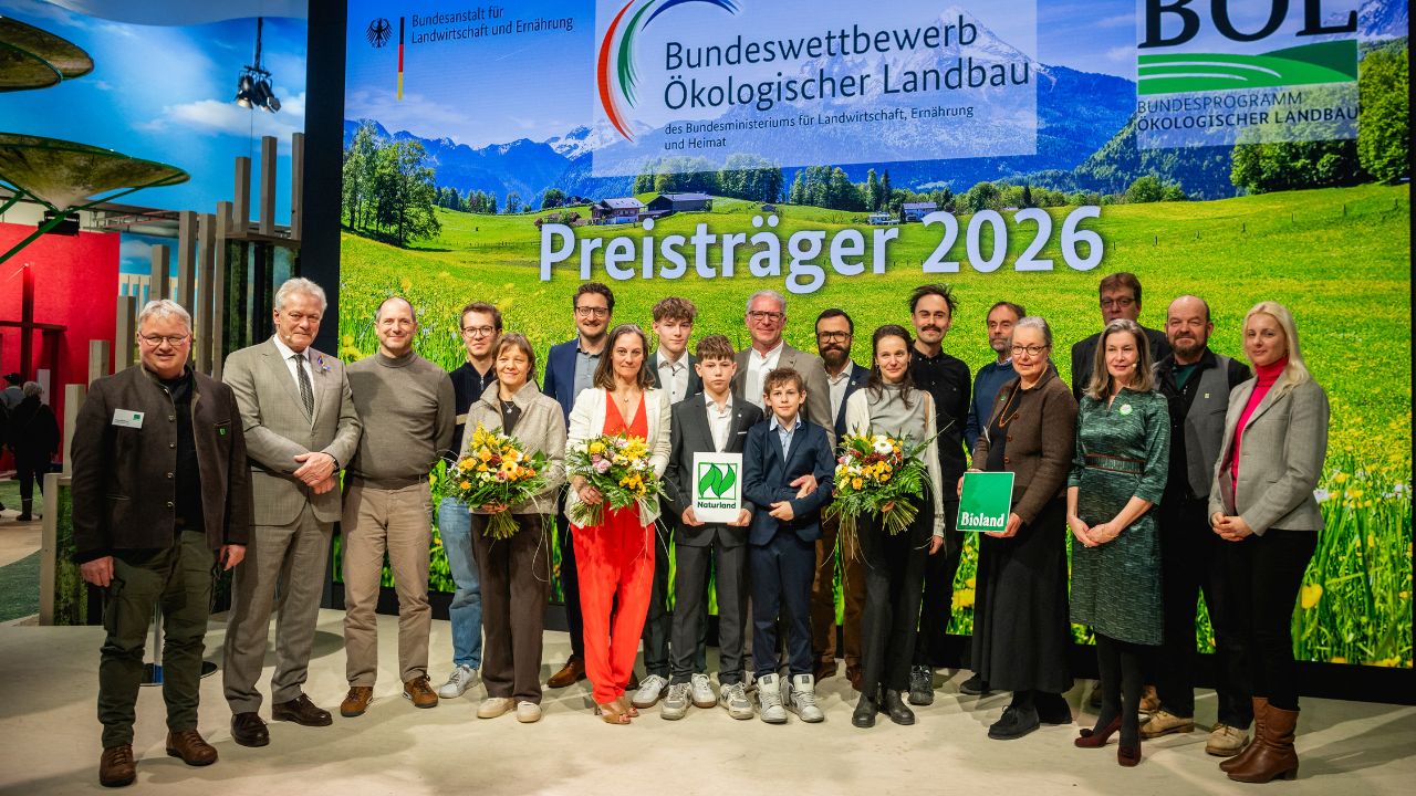 Berlin, 22. Januar 2026. Wenn visionäre Ideen auf praktisches Handwerk treffen: Im Rahmen der Grünen Woche wurden heute landwirtschaftliche Betriebe geehrt, die Maßstäbe für die Lebensmittelproduktion von morgen setzen. Unter den Preisträgern ist der Bioland-Hof Obermayer aus Niedersachsen. Er zeigt, wie eine grundlegende Neuausrichtung eines landwirtschaftlichen Betriebs gelingen kann.