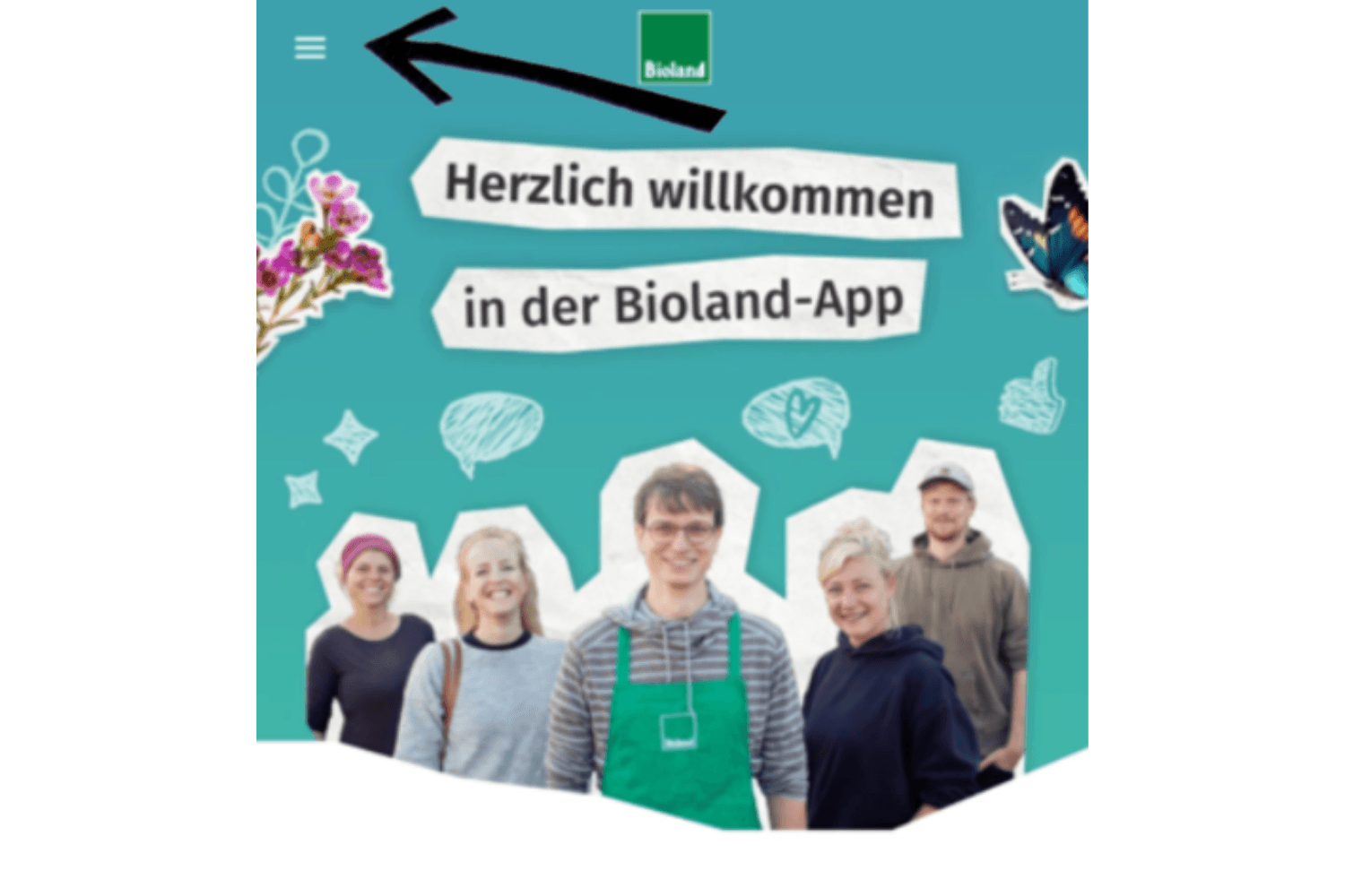 Öffne die Bioland-App auf deinem Smartphone oder (falls du die App nur auf dem PC nutzen möchtest) rufe in deinem Internet-Browser die Seite bioland-app.de auf.