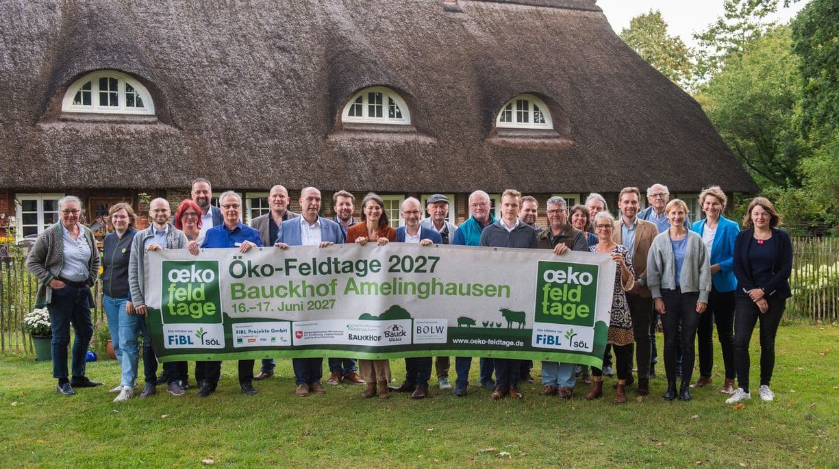Veranstalter, Mitveranstalter und Unterstützer geben den Startschuss für die Öko-Feldtage 2027. (Foto: Lars Wendlandt)