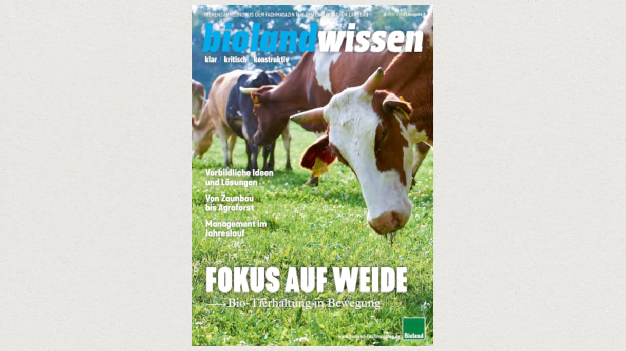 Spätestens für die Weidesaison 2025 müssen nun Weidekonzepte vorliegen und zumindest einige Tiergruppen geweidet werden. Um Sie auf der Suche nach Lösungen für Ihre betriebliche Situation zu unterstützen, hat der Bioland-Verlag biolandWissen Weide zusammengestellt: Voll mit Beispielen von Kolleg:innen, Tipps aus der Bioland Beratung und Informationen von Expert:innen.