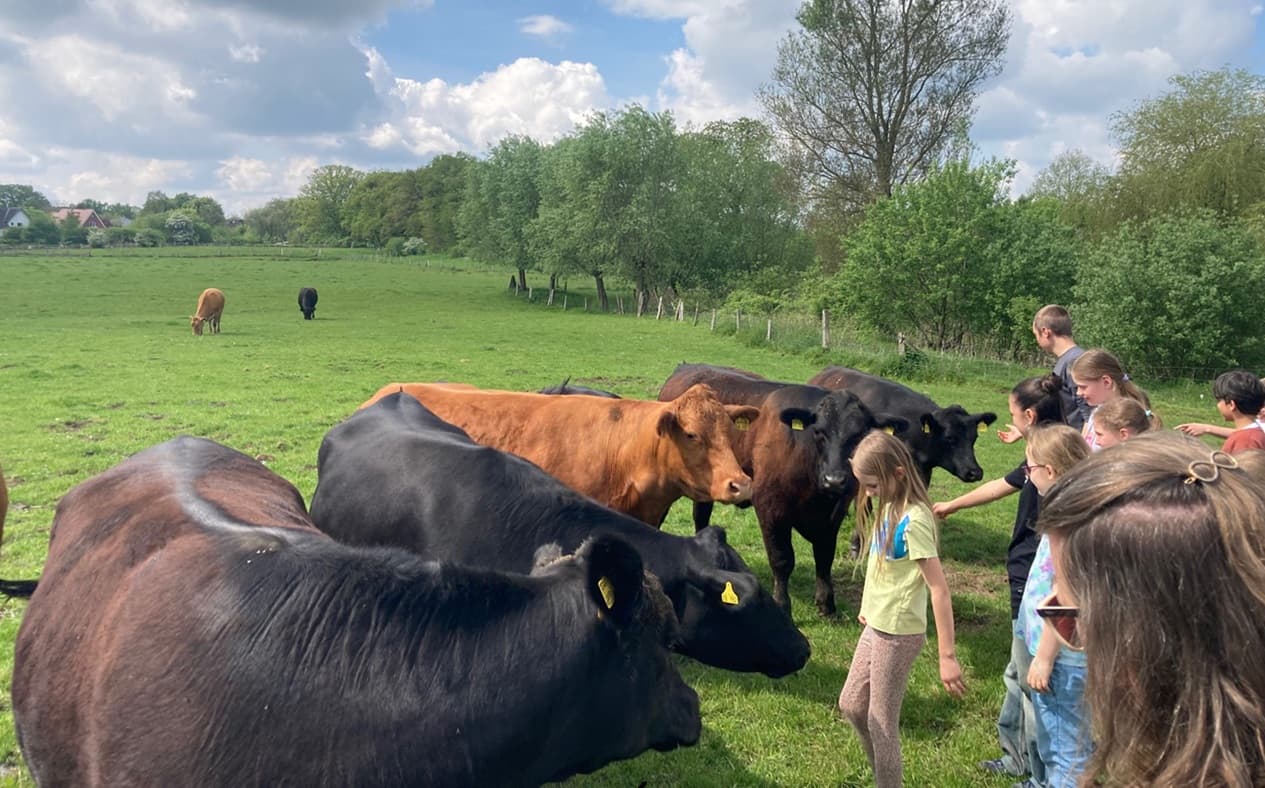 Kinder erfahren, wie das Leben der Kühe auf der Weide aussieht. (Foto: Hannah Albert)