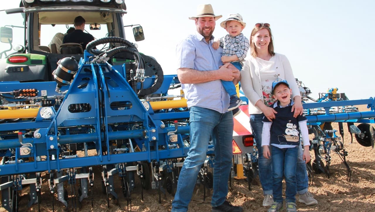 Engelbert Rath und seine Familie mit dem neuen Hackgerät (Foto: Eileen Nicolai)