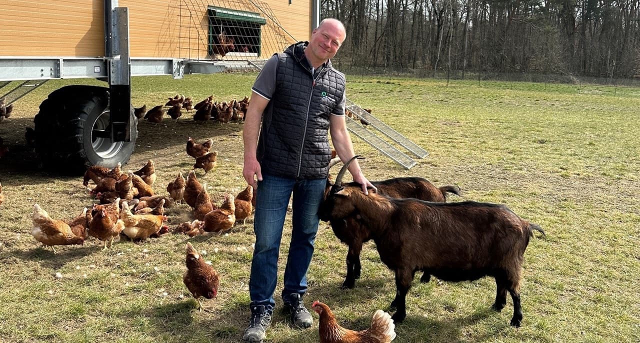 Bei Landwirt Markus Wöhl schützen Ziegen seine Hennen. Das hessische Praxishandbuch zeigt weitere Möglichkeiten auf. (Foto: HMLU)