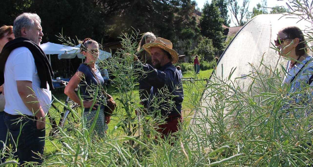Der Samen für ökologisch gezüchteten Rosenkohl reift heran, zeigte Gemüsezüchter Christoph Matthes. Ermöglicht hat dies die Zukunftsstiftung Landwirtschaft, die seit 25 Jahren Projekte finanziert. Für zehn Generationen braucht Rosenkohl 20 Jahre. (Foto: Brigitte Stein)