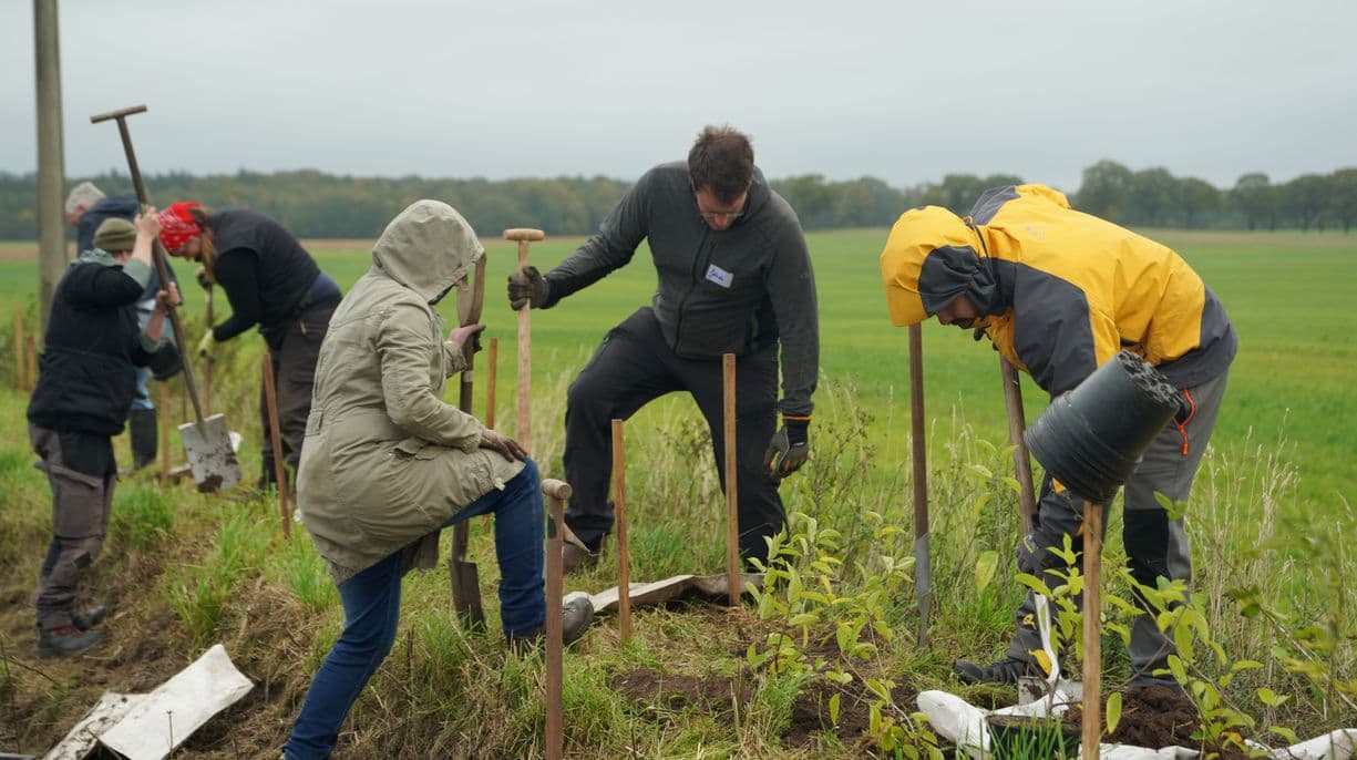 Teilnehmer:innen des Heckenkongresses bei der Pflanzaktion (Foto: BaumLand-Kampagne, Heckenretter)