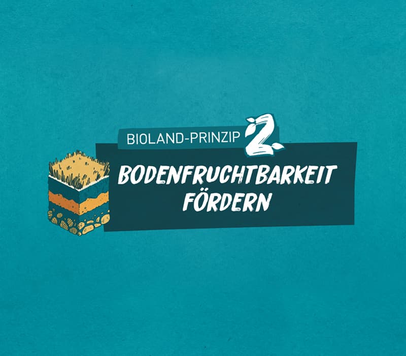 Gesunder Boden führt zu gesunden Pflanzen, Tieren, Menschen und einem intakten Klima. Mit seinen Milliarden von Bodenorganismen ist er außerdem der artenreichste Lebensraum der Erde. Mit Hilfe des organisch-biologischen Landbaus erhöhen wir den Humusgehalt, fördern das Bodenleben und verbessern die Bodenstruktur. So versuchen wir, die Bodenfruchtbarkeit auf natürliche Weise zu fördern und für zukünftige Generationen zu sichern.