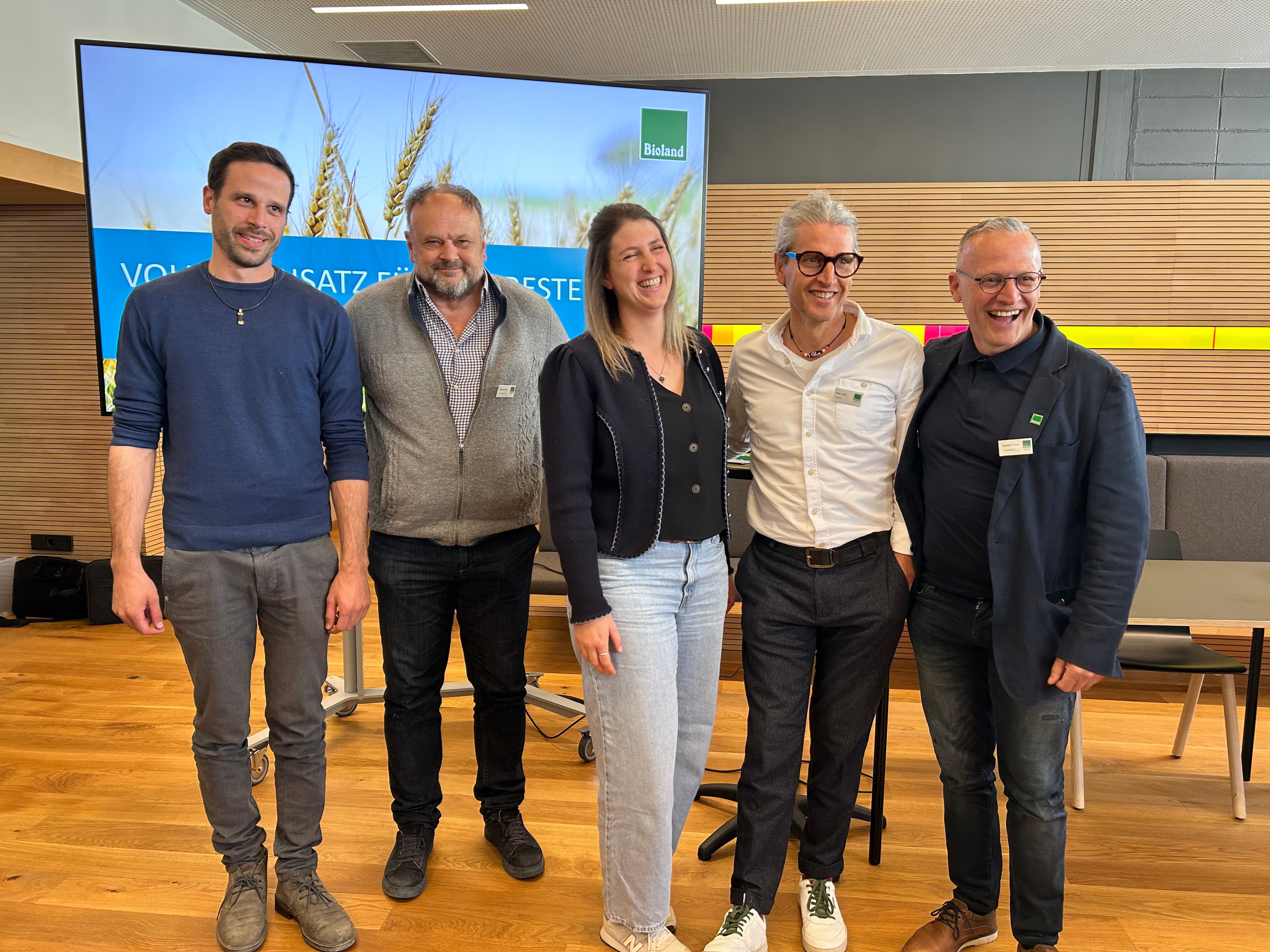 Bei der Mitgliedervollversammlung im Frühjahr 2024 wurde die neue Führungsspitze gewählt: Alma Calliari und Walter Steger führen Bioland Südtirol für die nächsten drei Jahre, gemeinsam mit den Vorstandsmitgliedern Heinrich Runer, Ulrich Gamper und Johann Tappeiner.